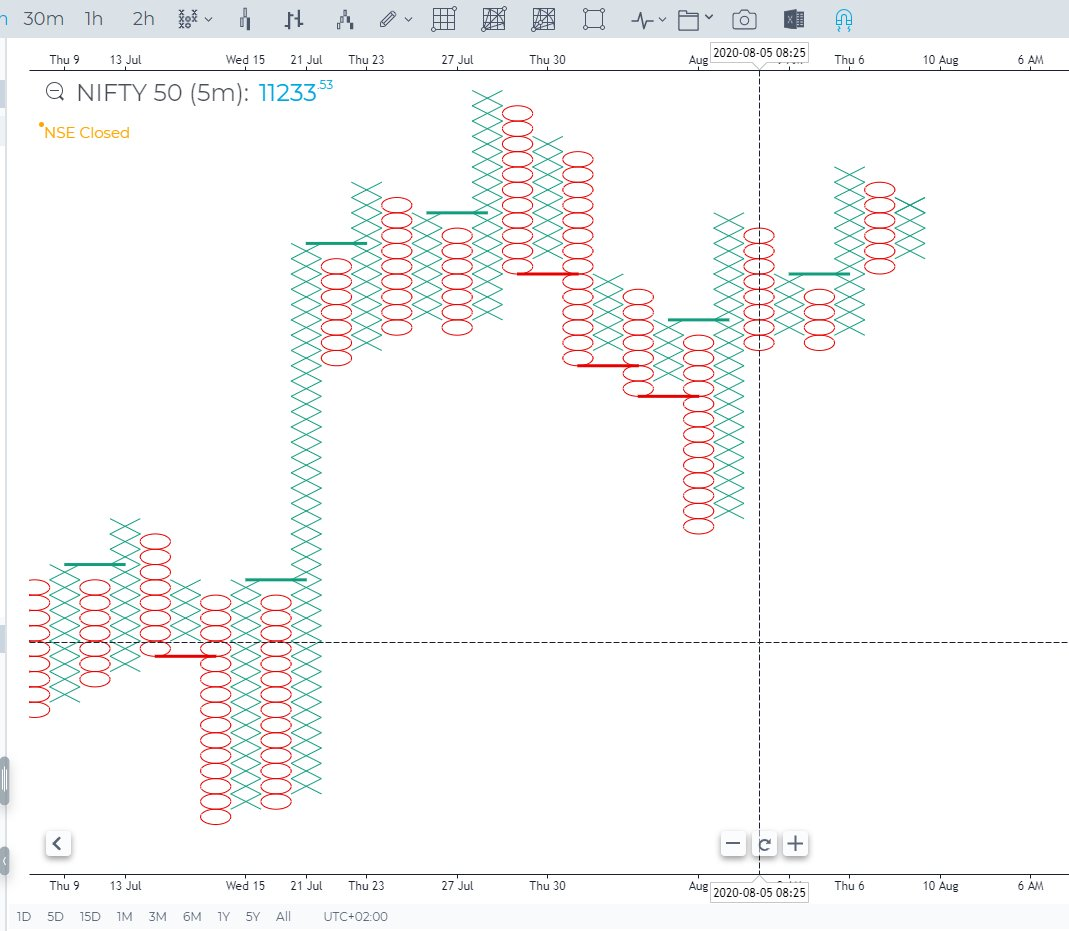 - Uses an % increase or decrease in price to determine the box size. Since it is a % normalized hence the aboslute value of the price increase and decrease will vary at every candle level. This is an extremely powerful setup to filter out noise