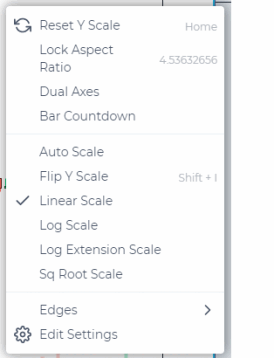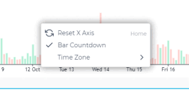 The right click functionality open us context menus each on the price and time axes