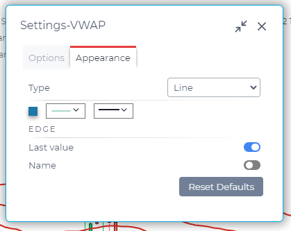 VWAP line — set the main line type, its thickness and color