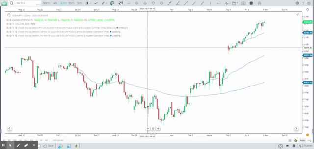 Anchored VWAP or Custom VWAP tool allows drawing a VWAP line within a specified range or from a specified starting point.