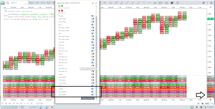 BVWAP stands for Buy VWAP and SVWAP stands for Sell VWAP. These are important metrics that measure polarity between buyers and sellers within a candle.